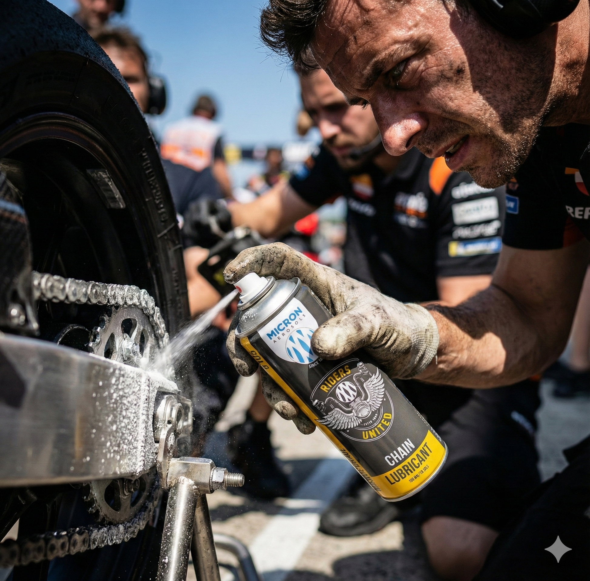 5201 Riders United™ Chain Lubricant Spray is a high-performance motorcycle chain lubricant formulated with PTFE (Teflon®) technology to deliver superior lubrication, long-lasting protection, and ultra-smooth power transmission. Designed for demanding riding conditions, it penetrates deep into chain links and rollers, forming a durable, low-friction protective film that resists wear, corrosion, and fling-off.